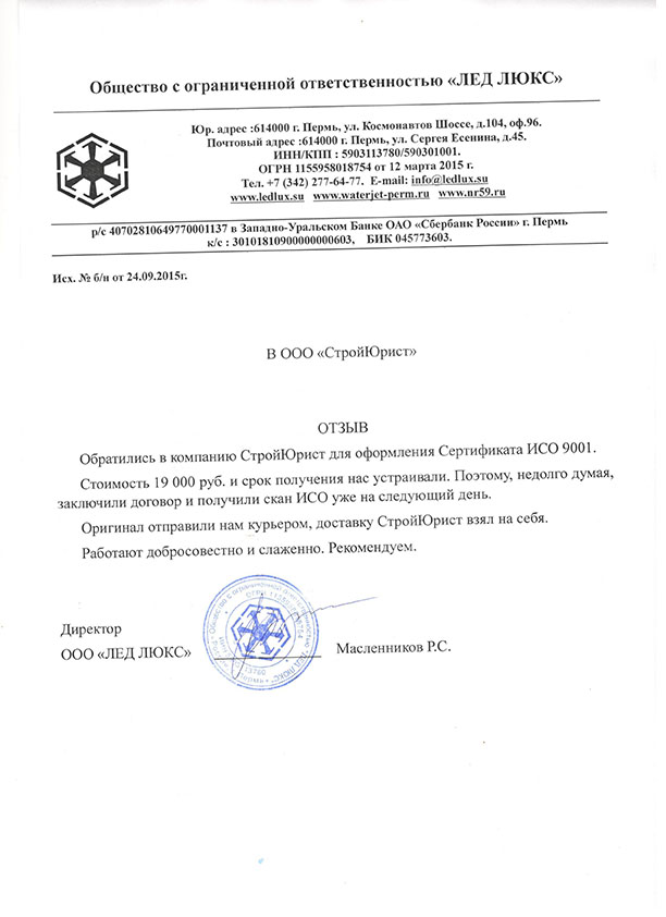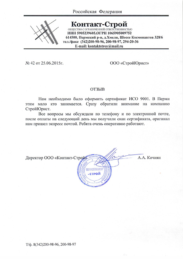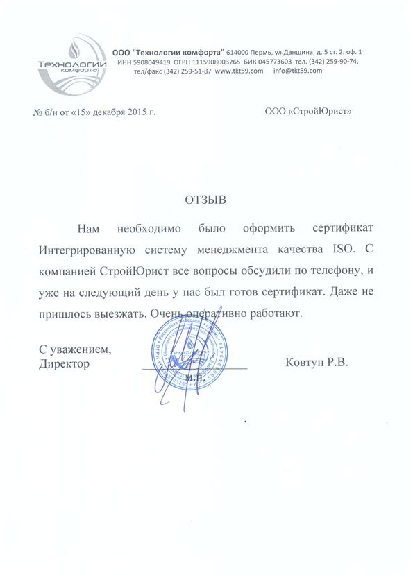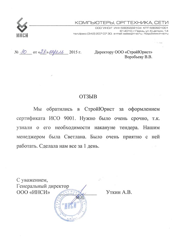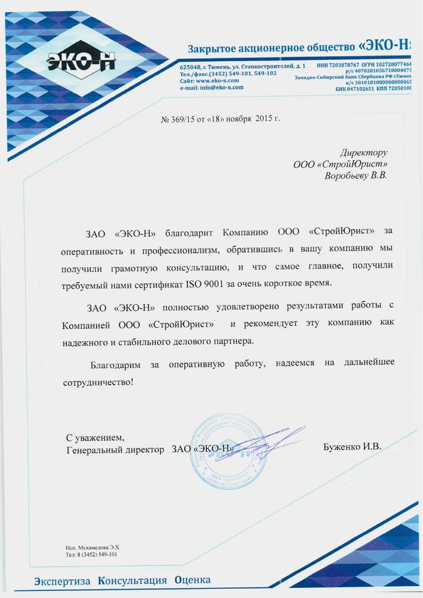 Отзывы клиентов "СтройЮрист" по ISO в Новом Уренгое