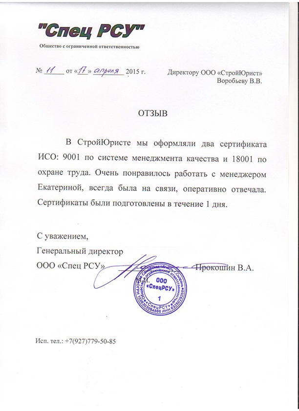 Отзывы клиентов "СтройЮрист" по ISO в Новом Уренгое