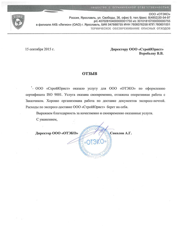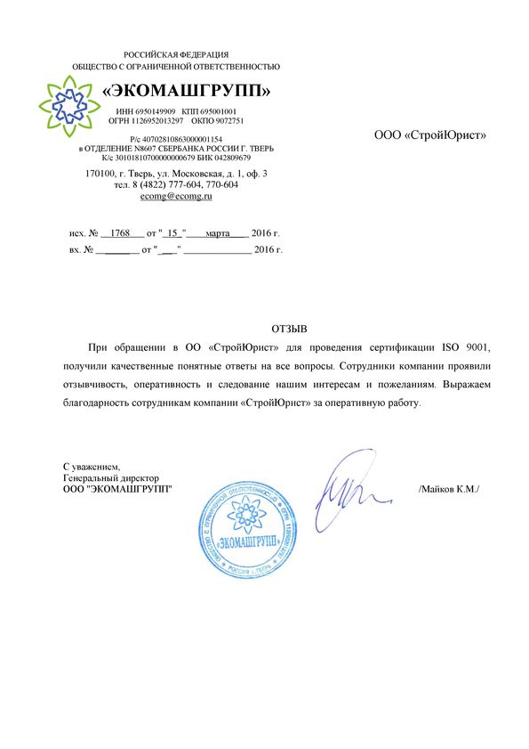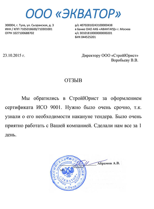 Отзывы клиентов "СтройЮрист" по ISO в Новом Уренгое