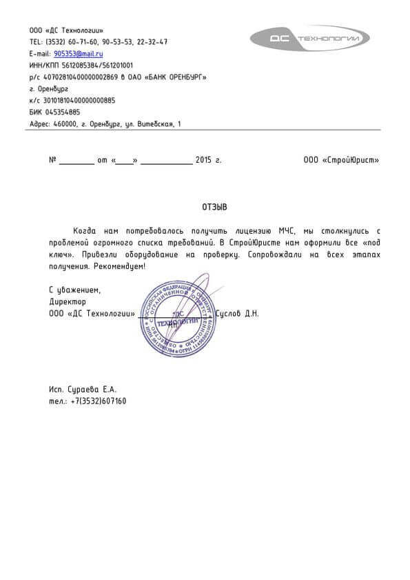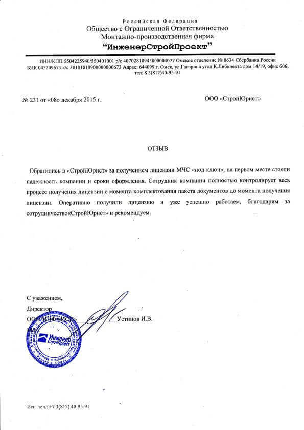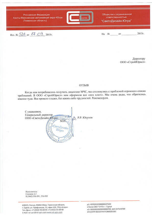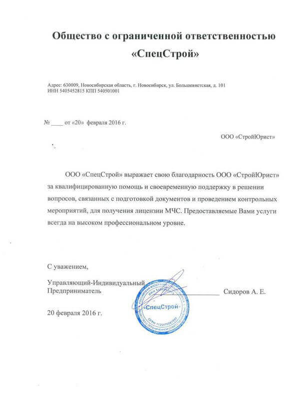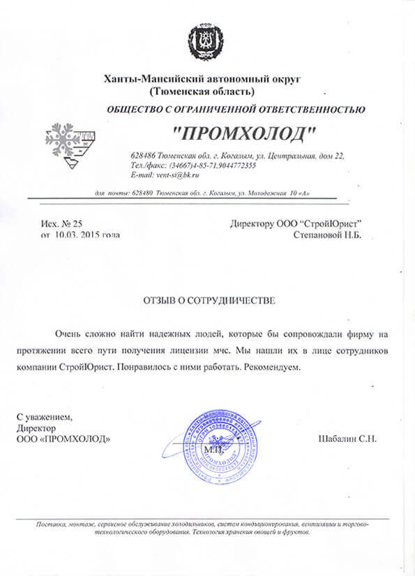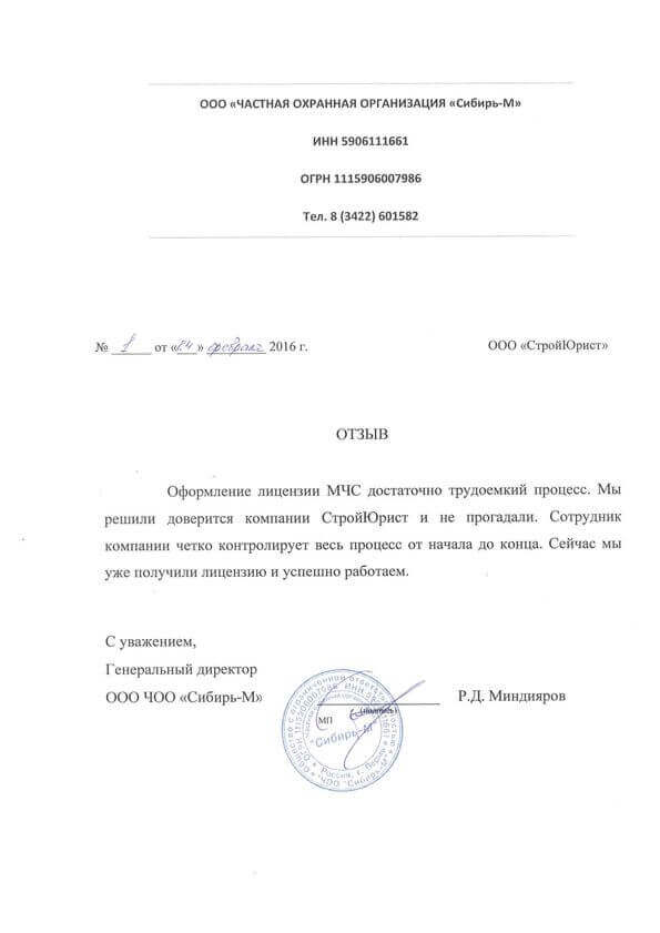Отзывы клиентов "СтройЮрист" по лицензированию МЧС в Новом Уренгое
