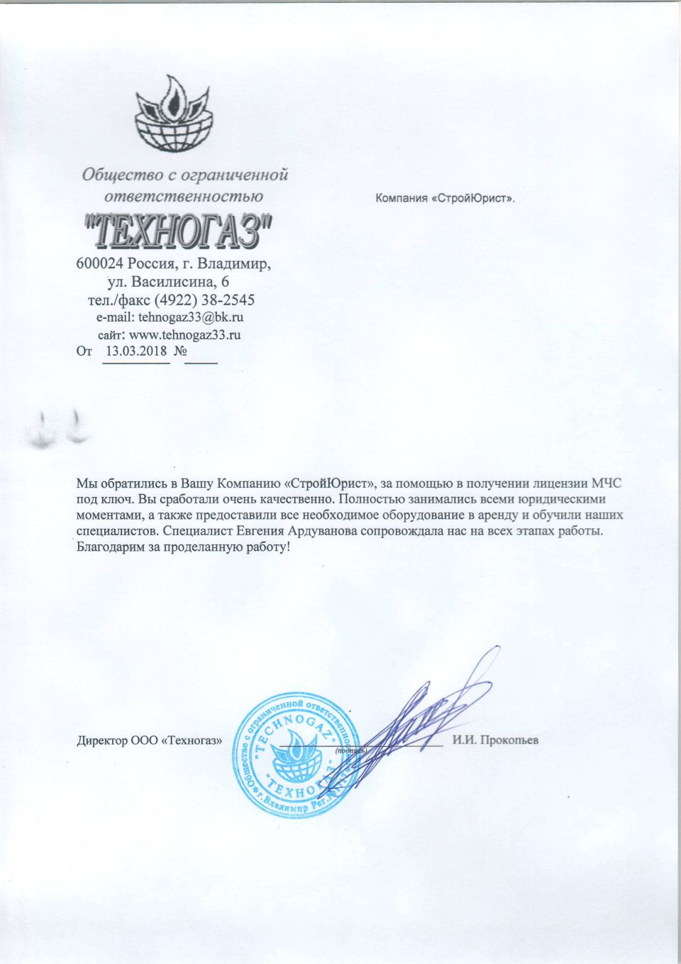 Отзывы клиентов "СтройЮрист" по лицензированию МЧС в Новом Уренгое