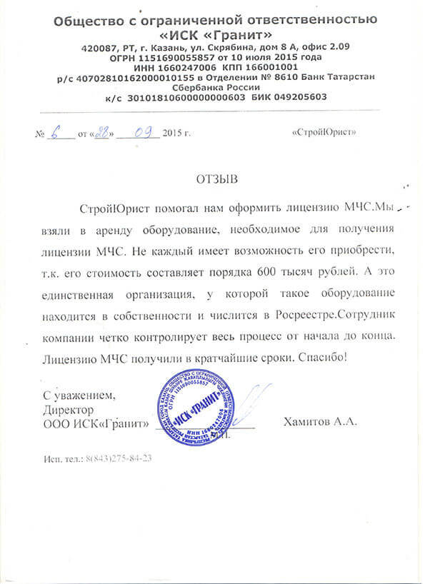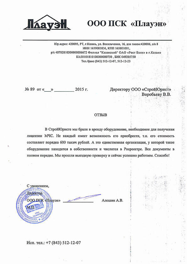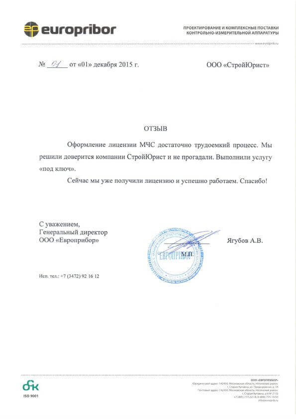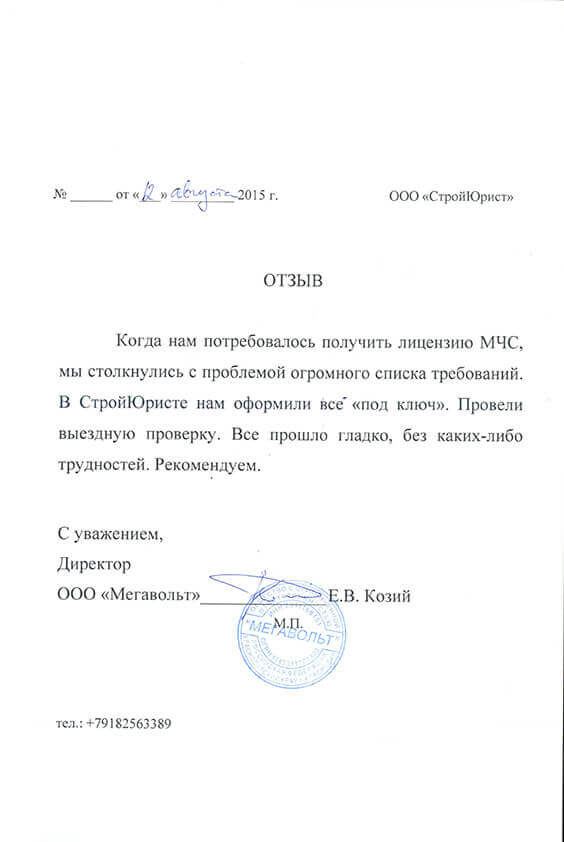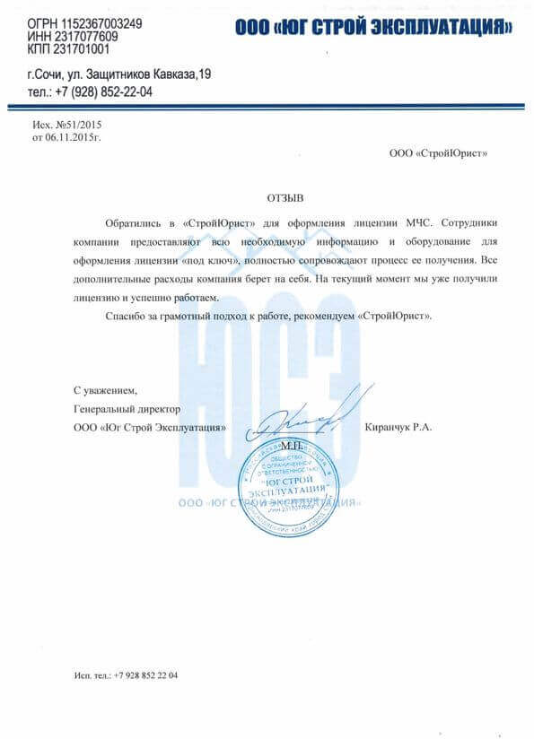 Отзывы клиентов "СтройЮрист" по лицензированию МЧС в Новом Уренгое