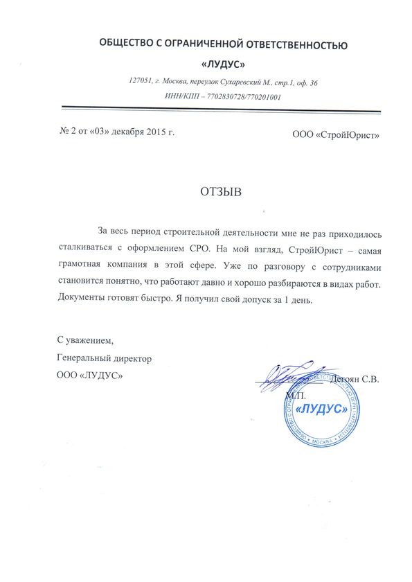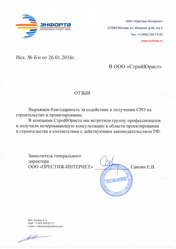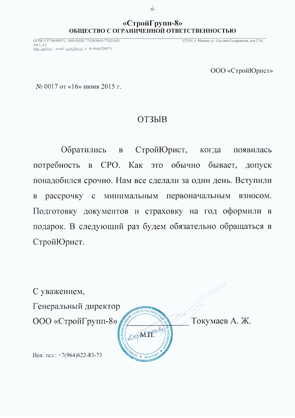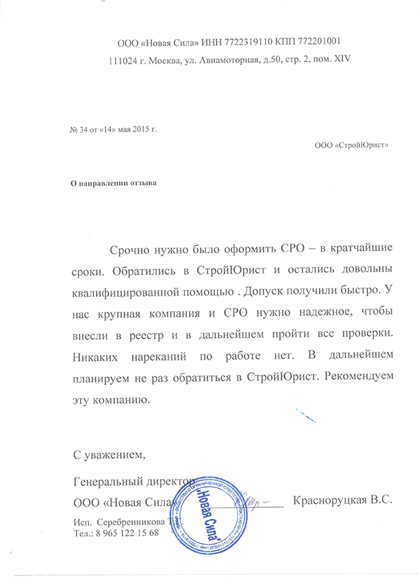Отзывы клиентов "СтройЮрист" по вступлению в СРО в Новом Уренгое