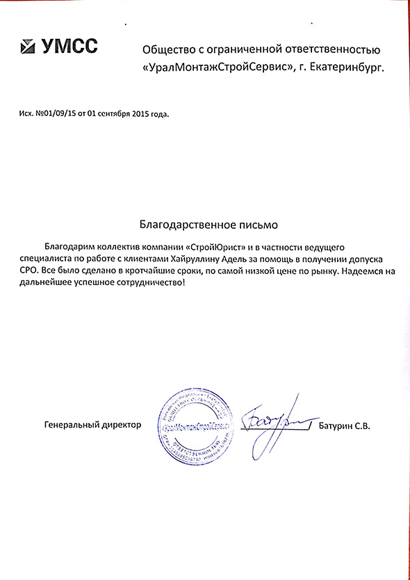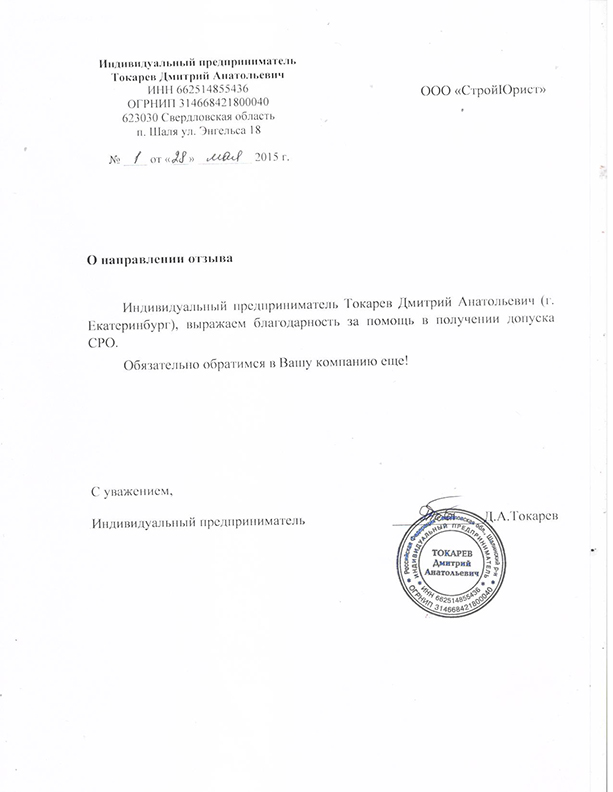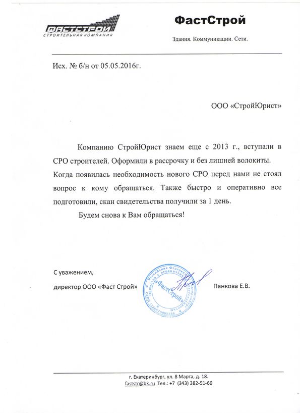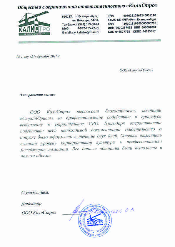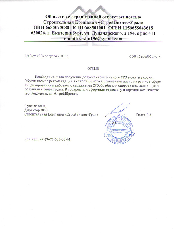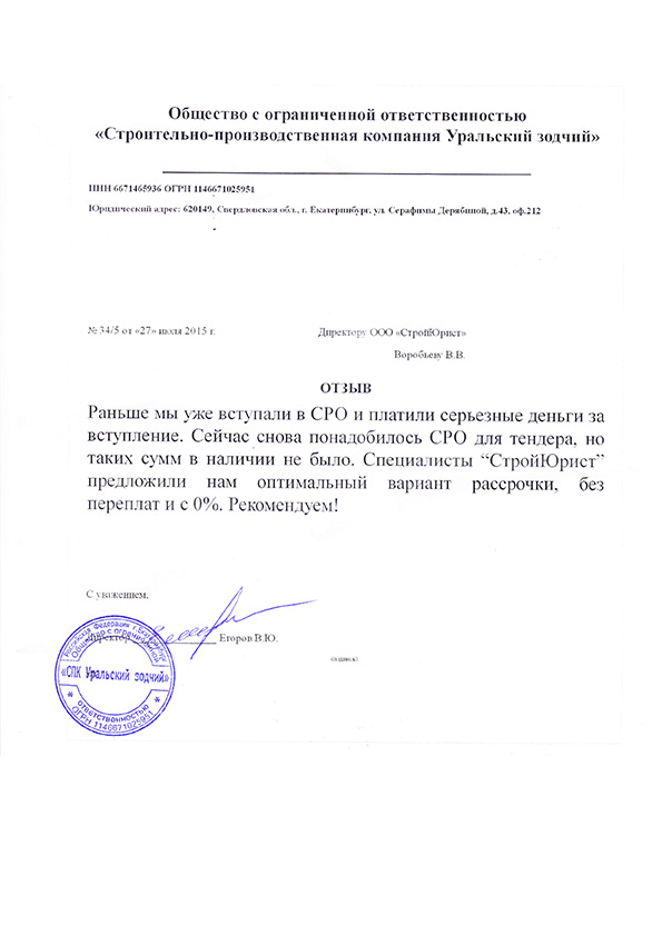 Отзывы клиентов "СтройЮрист" по вступлению в СРО в Новом Уренгое