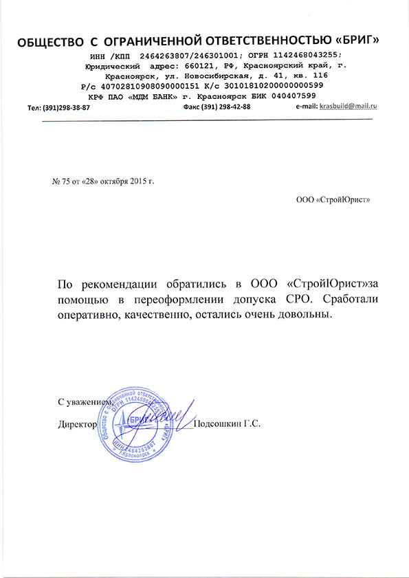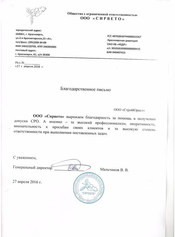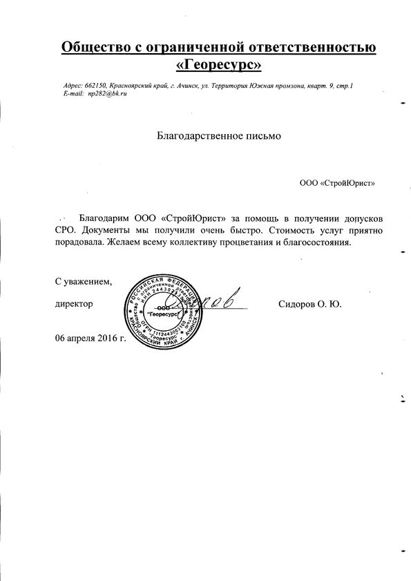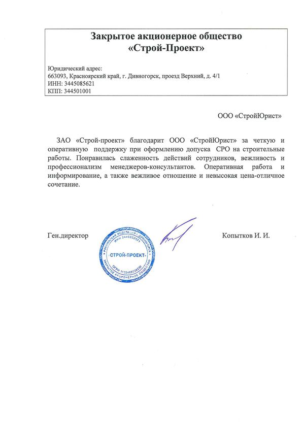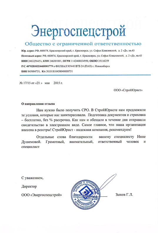 Отзывы клиентов "СтройЮрист" по вступлению в СРО в Новом Уренгое
