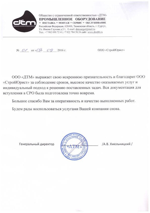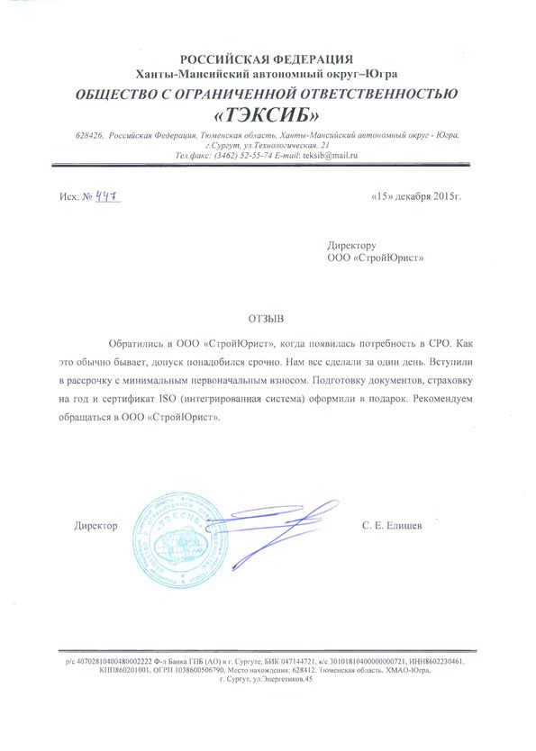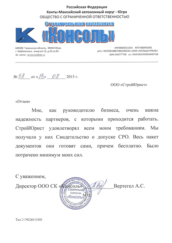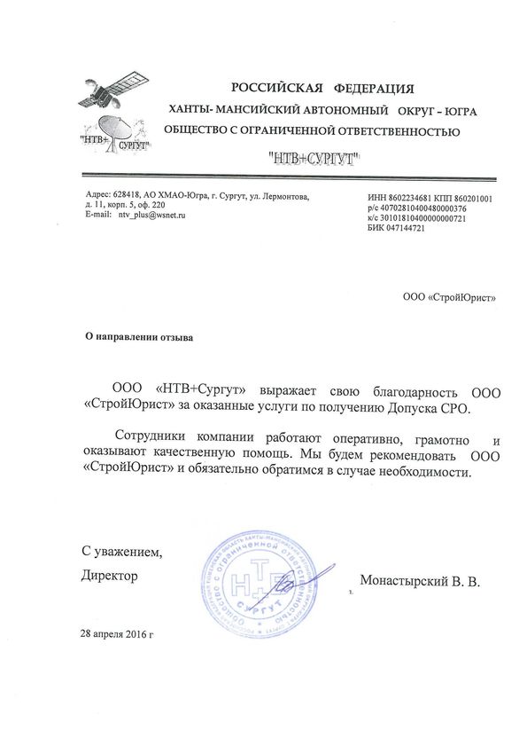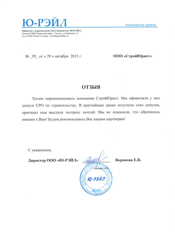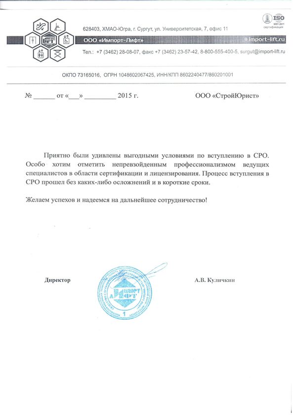 Отзывы клиентов "СтройЮрист" по вступлению в СРО в Новом Уренгое