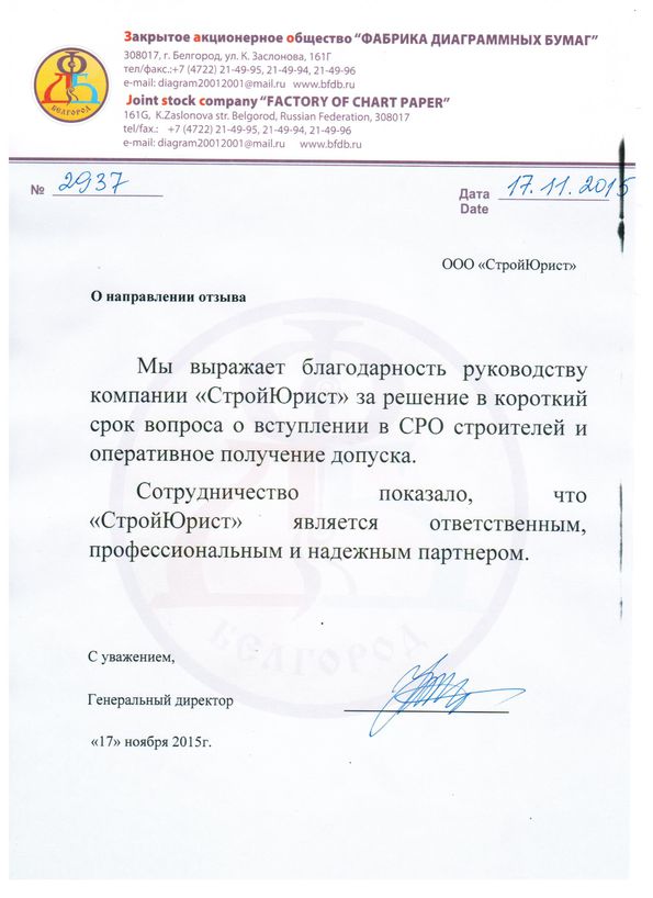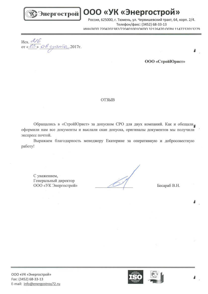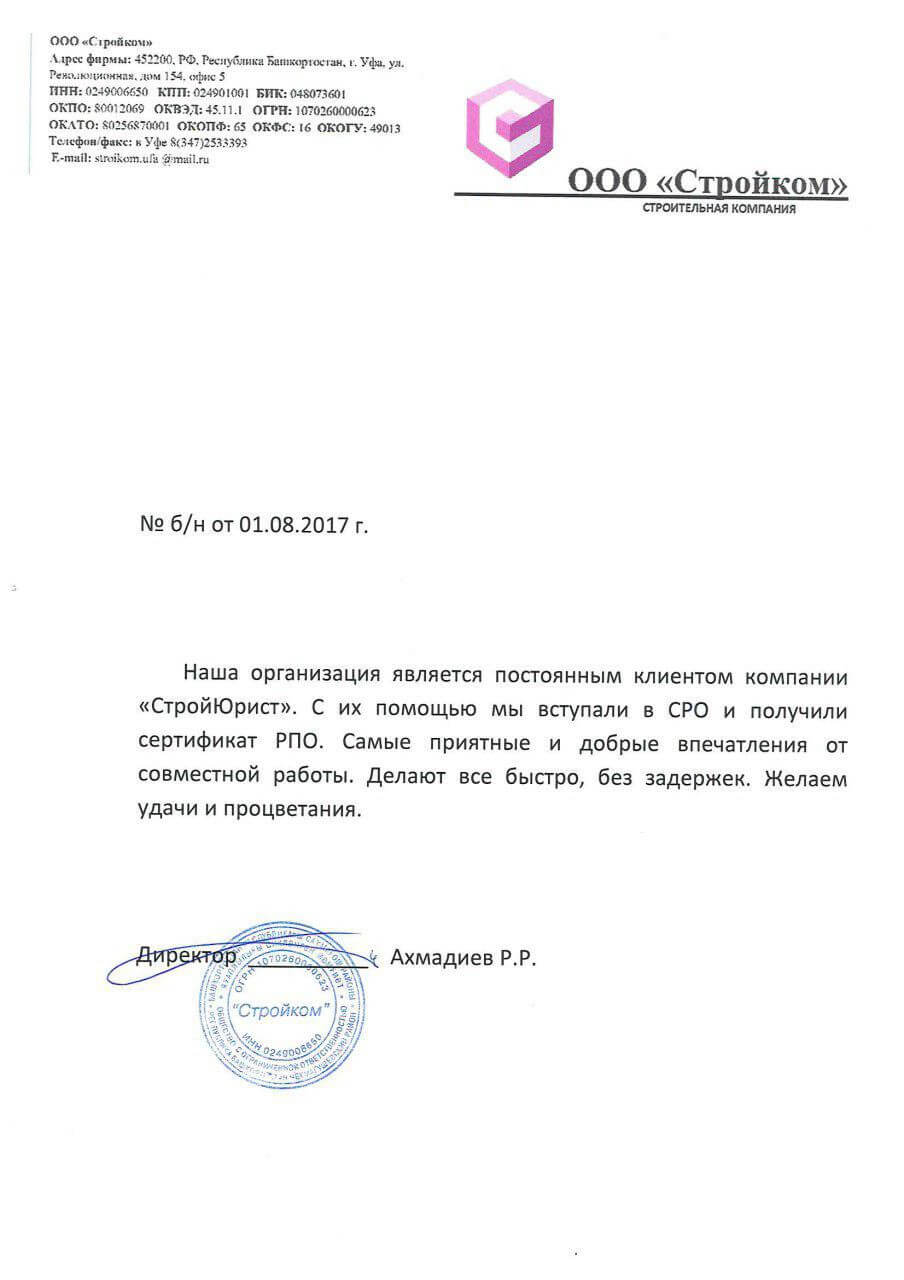 Отзывы клиентов "СтройЮрист" по вступлению в СРО в Новом Уренгое